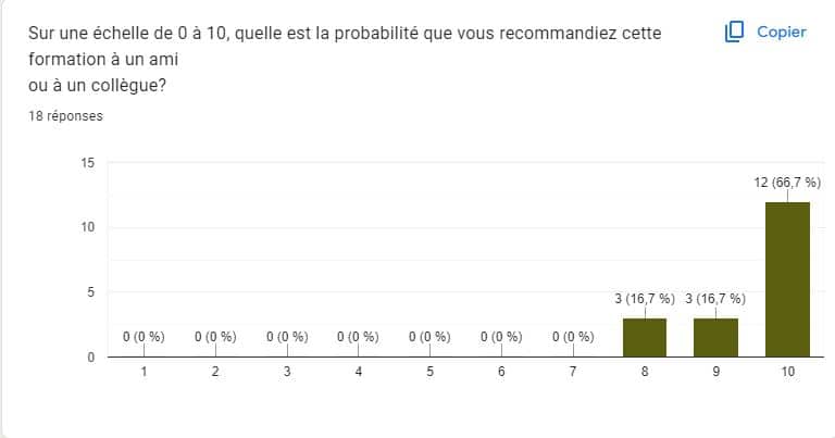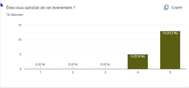 18 répondants, (soit 67 % des participants) à l’enquête de satisfaction