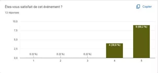 13 répondants (soit 48% des participants) à l’enquête de satisfaction