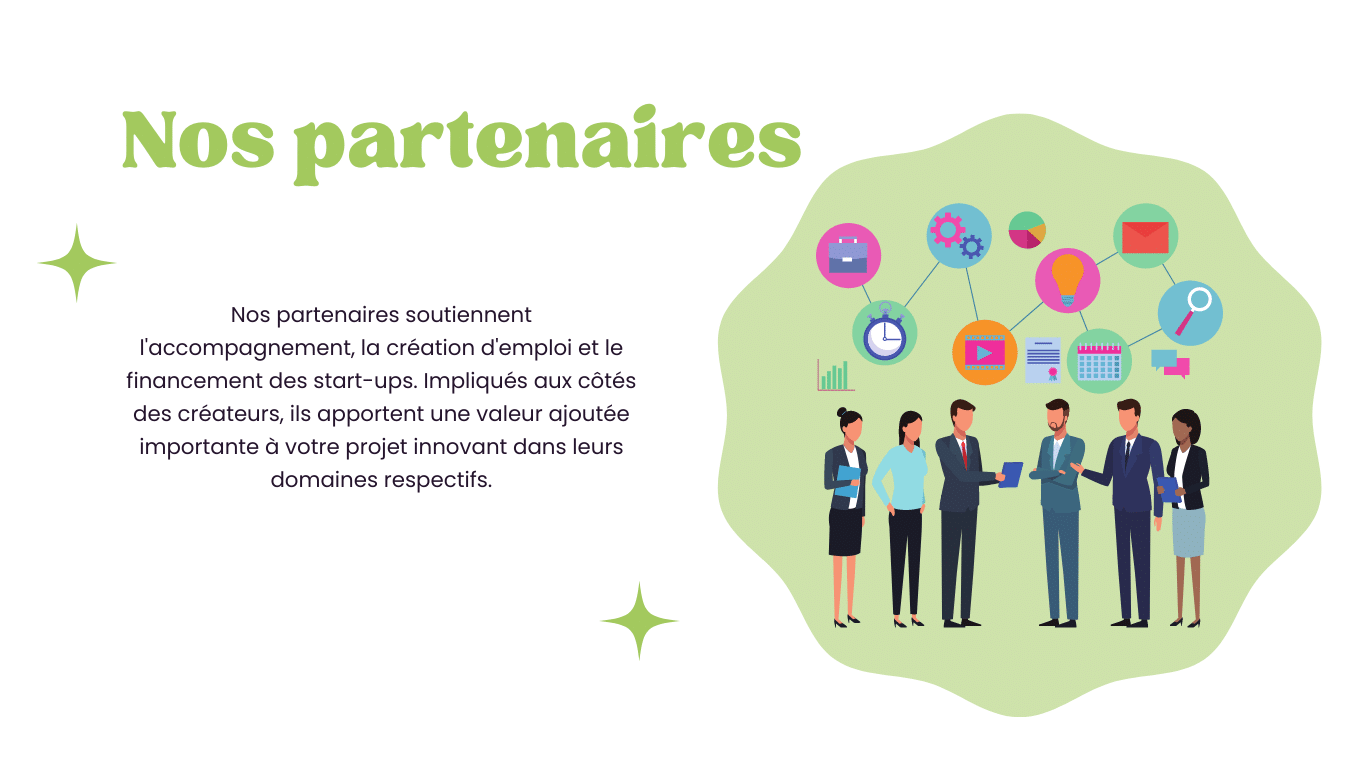 Créer une entreprise et en assurer sa croissance est un challenge pour lequel rien ne peut-être laissé au hasard. Il est essentiel de s’entourer de partenaires au savoir-faire éprouvé. C’est d’autant plus vrai lorsque l’on souhaite faire preuve d’innovation. Nos partenaires sont des experts reconnus dans leur spécialité. Impliqués aux côtés des créateurs, ils apportent une valeur ajoutée importante à votre projet innovant dans leurs domaines respectifs.