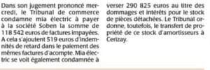 Un article dans Le_Courrier_de_l_Oues_Deux_Sevres_ sur le jugement rendu le 26 septembre dernier dans l’affaire opposant Soben, notre entreprise affiliée et MIA Electric.